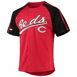 Look and feel like an ultimate grand slam with this Cincinnati Reds Replica jersey from Stitches. Along with a classic button-down design, it offers roomy raglan sleeves to keep you comfortable as you cheer on the squad. Best of all, its striking Cincinnati Reds embroidery and applique keep this piece right in your wheelhouse.